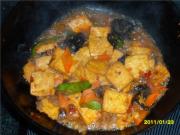 下入炸好的豆腐一起炖一下,待汤汁浓稠用淀粉勾芡出锅。