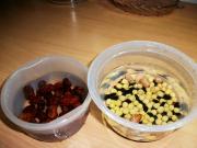 将量好的豆子和红枣分别浸泡。其实我的豆浆机是可以打干豆的,但为了保护刀头,我还是会提前把豆子泡上。至于泡红枣是为了把它泡软一些以方便去核,(我买的枣干了点,用手不好弄开)。如果买的是无核的枣,那就方便多了。