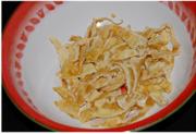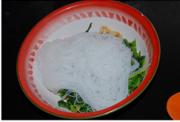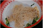 取一大碗,把蛋皮,菠菜,米粉一起放碗里。