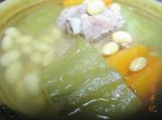 黄豆 50克 苦瓜 2条(约350克) 排骨 750克 红萝卜 1条(约200克) 马蹄 3个 姜 1小块 水 适量