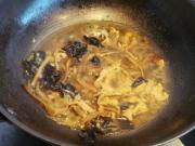 材料:木耳、黄花菜、肉片、葱花、蒜末。