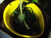 油菜洗净后,放入开水中焯烫一下,中间加入盐和几滴油。