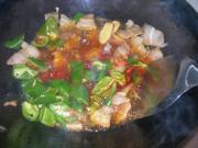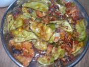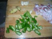 炒出油以后下姜片,青椒和豆瓣炒出香味。