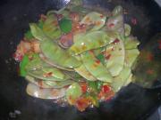 买回来的扁豆一定要把边上的筋摘掉,洗干净放着待用。