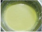 最后加入柠檬汁拌匀。此时面糊光滑无颗粒,如仍发现有小许颗粒,可将面糊过筛到干净的mixing bowl中,待会与蛋白霜混合。