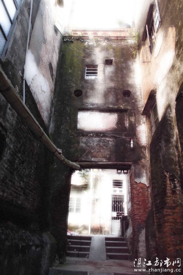 (这条狭窄的染坊街,曾经是湛江的古渡口。未填海之前,小街的尽头就是海了。站在街口, 我不禁地想象百多年前船桅如林、万商云集的盛况。只可惜原本的青石台阶早被水泥覆盖, 留给我们的只能是对那段遥远时光的无尽遐想了。)