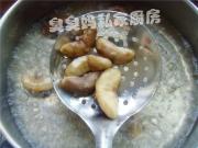 锅置火上水烧沸、下入菱角煮熟捞出去皮备用。