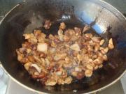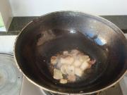 放入花椒、葱爆香,倒入口蘑翻炒。