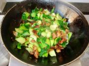 倒入油菜翻炒,加入盐、干辣椒,出锅前点入鸡精。