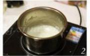 然后一边小火加热至65度,一边搅拌,直至浓稠光滑无颗粒,包上保鲜膜,放入冰箱冷藏备用。