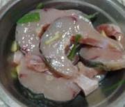 将鱼块用盐、料酒、姜、葱腌三十分钟,便于入味。