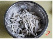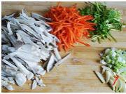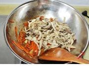 蘑菇洗净,用手撕成细丝,胡萝卜切成丝。