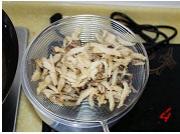 把沾好淀粉的蘑菇丝入锅炸三分钟,变硬即可。