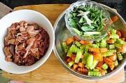 鸡杂洗净切片,莴笋,胡萝卜洗净切条。