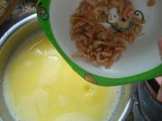 鸡蛋加水和一点盐打散,捞去气泡。
