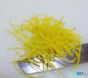 刮成薄片的柚子皮改刀切成细丝,越细越好!!这样是为了保证成品的口感。