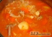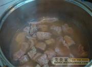 牛腩切块飞水,再加水,料酒,半个大蒜头,半个洋葱,煲3小时左右。