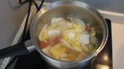 差不多时放鸡精出锅,撒上香油就可以拉。