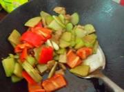 倒入佛手瓜和红辣椒炒断生即可。出锅放味精。