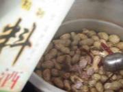 将花生倒入高压锅中水量与花生平行。