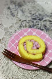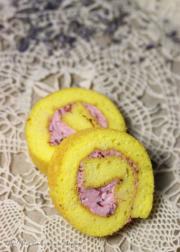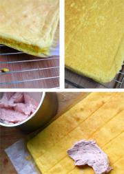 步骤三:将步骤二抹到蛋糕体背面,卷上蛋糕,冷藏1小时即可。
