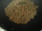 锅内倒油,加肉末炒开,放盐,豆瓣酱,生抽调味。