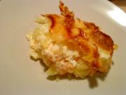 三文鱼 200克 土豆 适量 鸡蛋 4个 牛奶 4dl 牛油 少许 盐 适量 胡椒粉 适量 蒜粉 适量