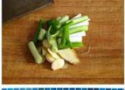葱切段,姜、蒜切片,杭椒切粒,豆瓣酱,甜面酱放入碗中加水和匀。