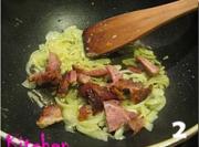 放入咸蹄髈肉丝,翻炒几下。