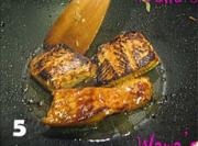中火少量油,放入三文鱼块,正反面煎至5分熟。三文鱼留在锅内。(LG喜欢吃面上有点焦的,所以剪的时间长了点)
