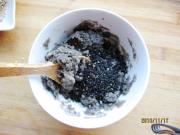 将黑芝麻糊与熟黑芝麻加凉开水拌成馅。