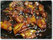 倒入腌制的排骨,迅速翻炒,让排骨裹上糖色。