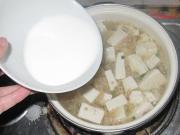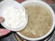 汤锅加水,将煸好的肉糜倒入锅中煮开。