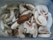吃火锅必备之冻豆腐,前天丢冻箱里的,切砣,蛏子洗干净外壳。