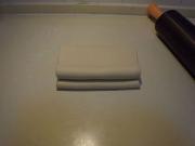 象叠被子那样四折,用压面棍轻轻敲打面片表面,再擀长。