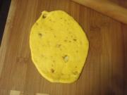 用折叠的方法将杏仁揉进面团中。