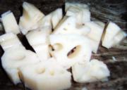 莲藕切成滚刀块。