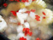 莲藕块 玉米块 枸杞一起下入汤锅中,继续煮至30分钟
