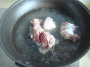 放半锅清水,放入洗净的筒骨,用大火烧开,煮5分钟出尽血水,关火,把筒骨捞出洗净。