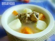 砂锅放适量水烧开(一次放够,中途不再加水),把筒骨和姜放入,用大火烧开后转小火。