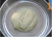 将搅好的绿豆泥放入细筛网过滤。(这是一个相当费时费力的差事)。