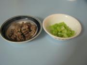 芹菜和鸡胗分别用开水,烫一下。