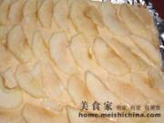 将剩余的面糊推匀在南瓜片上,最后摆上苹果片刷薄薄一层蜂蜜。