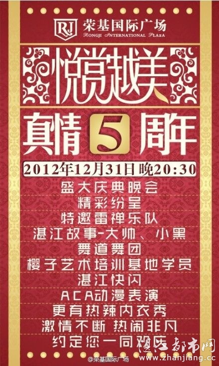 今晚是2012年的尾声了,不知不觉一年时间这么快就过去了。想想这一年时间里,自己收获了多少,来年是不是要更加努力获取更多。相信,新的一年开始,会是个好兆头。让今晚的倒数与全湛江人民共同进入新的一年,共同来迎接蛇年的到来。今晚的节目可以说是精彩丰富,四大商场各有千秋。