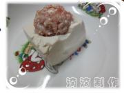 将肉糜塞入之前挖好的豆腐里面,做成一个小肉圆的样子差不多。每个都要这样哦。