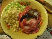 再加一个鸡蛋,忘了说,要加香油色拉油也可以的,加适量的胡椒面,咸盐味素,顺时针搅拌上劲。