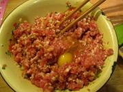 放好葱姜末,还有就是猪肉馅,我是买现成的,哈哈很方便吗~我喜欢自己挑肉之后让卖家给绞新鲜的,感觉现成的肉馅不新鲜。