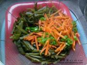 烧开水后把海白菜,胡萝卜和青椒汆烫一下