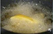 将水,砂糖,酱油,醋一起放到锅里小火加热。