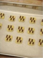 香草面团: 低粉 100g 细砂糖 50g 黄油 50g 水 5ml 蛋黄 1个 香草精 少许(没有可以不加) 巧克力面团: 低粉 85g 可可粉 15g 细砂糖 50g 黄油 50g 水 5ml 全蛋液 1/3个 另需全蛋液 1/3个